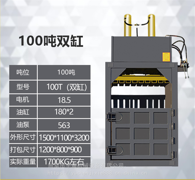 宇晨机械液压打包机可用来回收压缩硬纸板、废薄膜、废纸、泡沫塑料、饮料罐和工业边角料等包装材料及废品。立式液压打包机主要由液压缸、电机与油箱、压盘、箱体及底座、上门、下门、门闩、打包带支架、铁支等构成。这种液压打包机减少废物存储空间,节约达80%的堆放空间,降低运输费用,同时有利于环保和废物回收,是制造商和批发零售商处理囤积废物的理想选择。 这款小型立式打包机可广泛应用于餐饮业、仓储物流、医用废料、商场、制造业、食品行业和其他工商企业