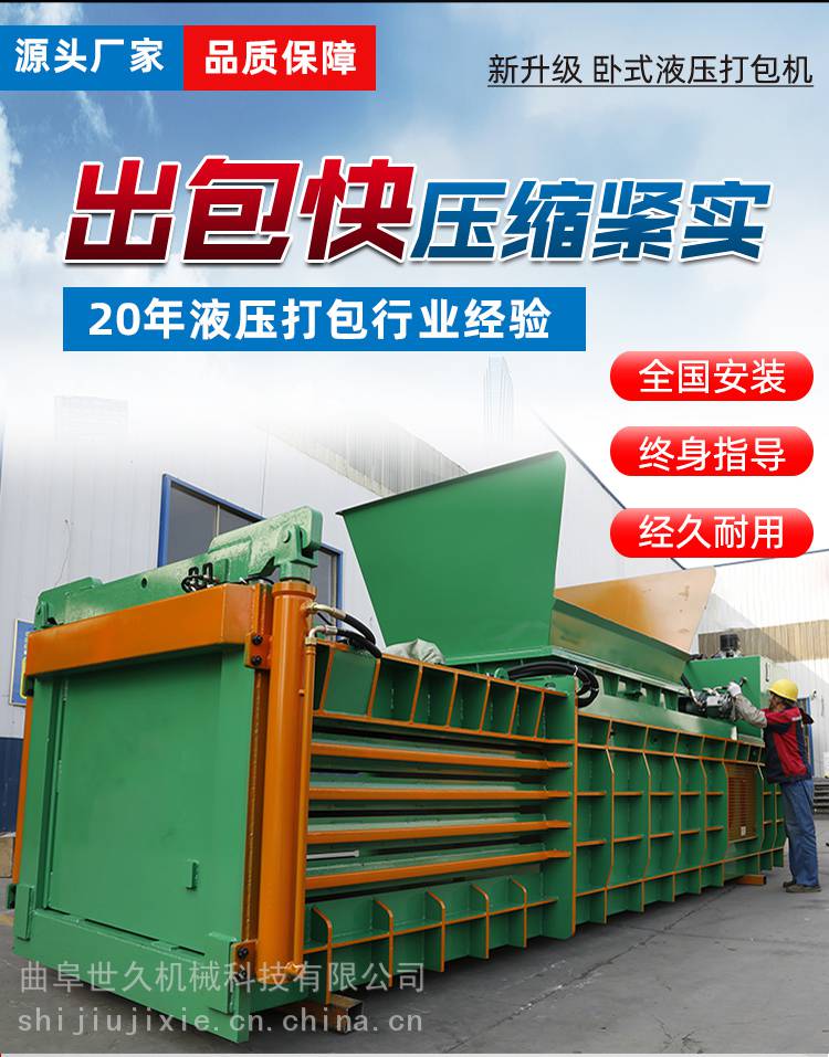 世久100T农场秸秆谷物打包机 卧式麻袋布匹压包机