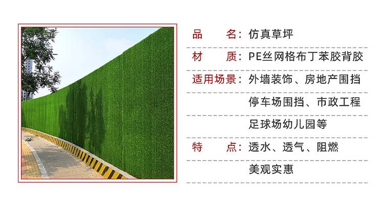春草色2.5cm围墙假草皮 人造围挡草坪 工地围挡绿色草坪