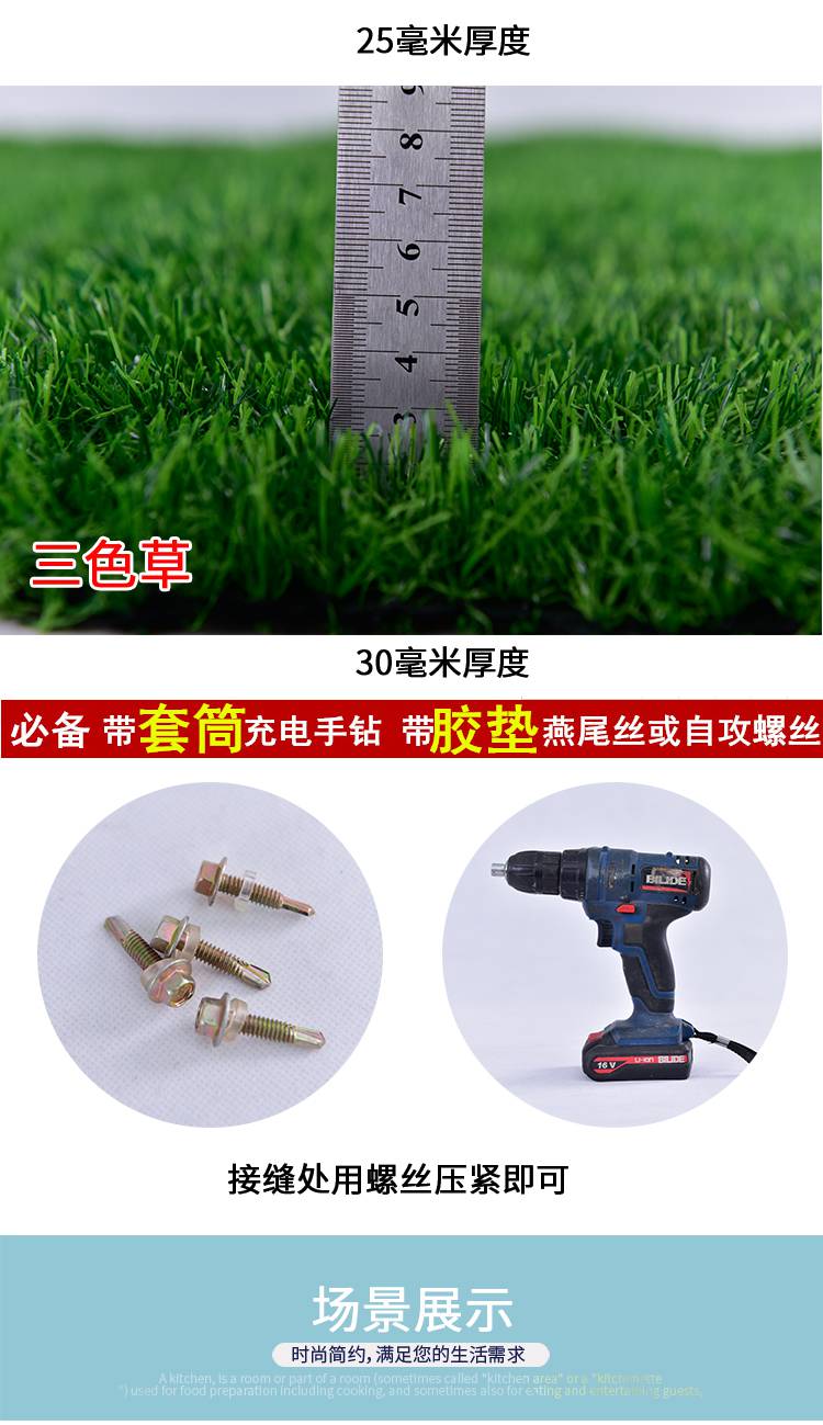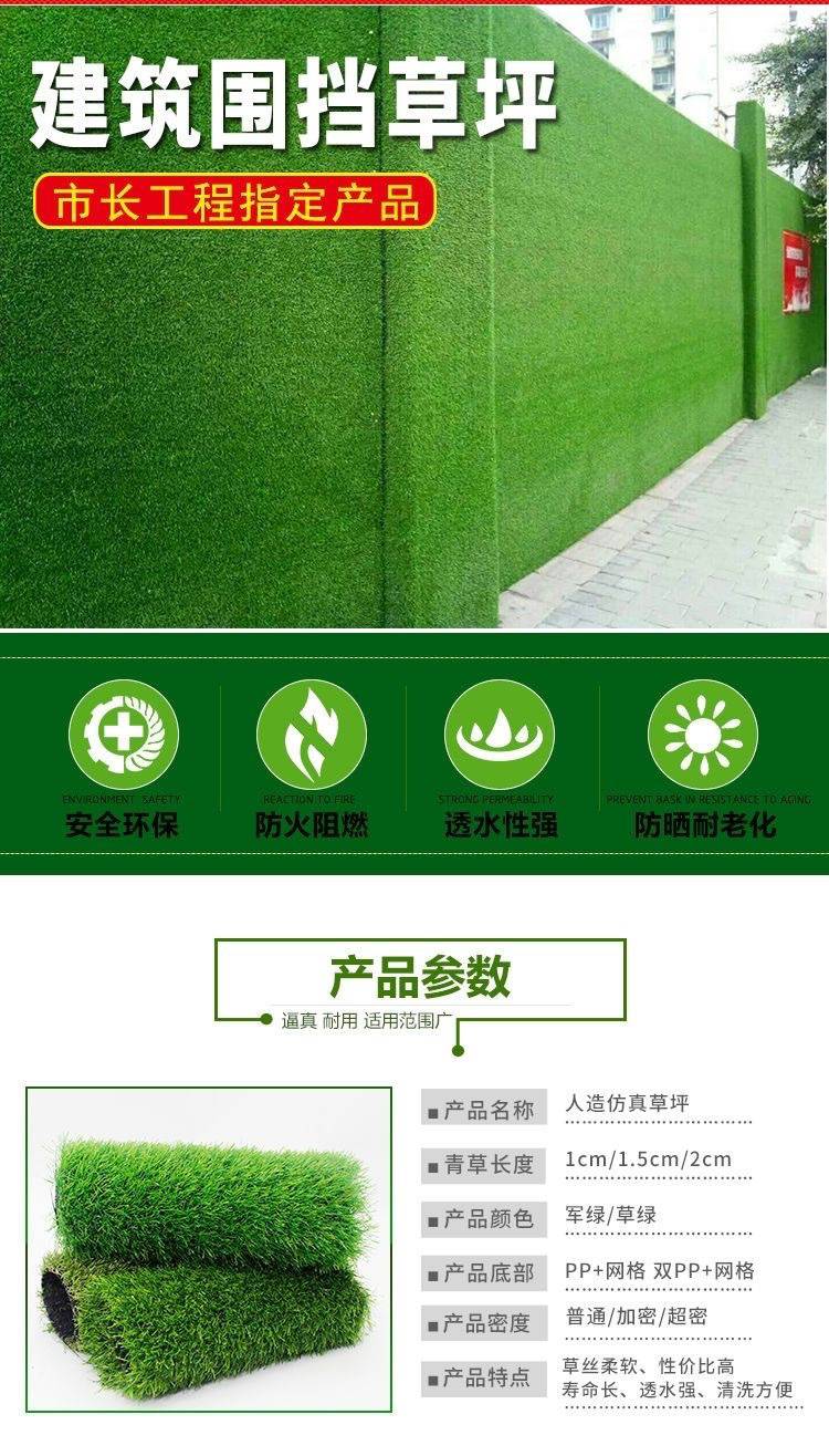 深三色25mm墙面人造草皮 围挡塑料草皮 施工围挡仿真草坪