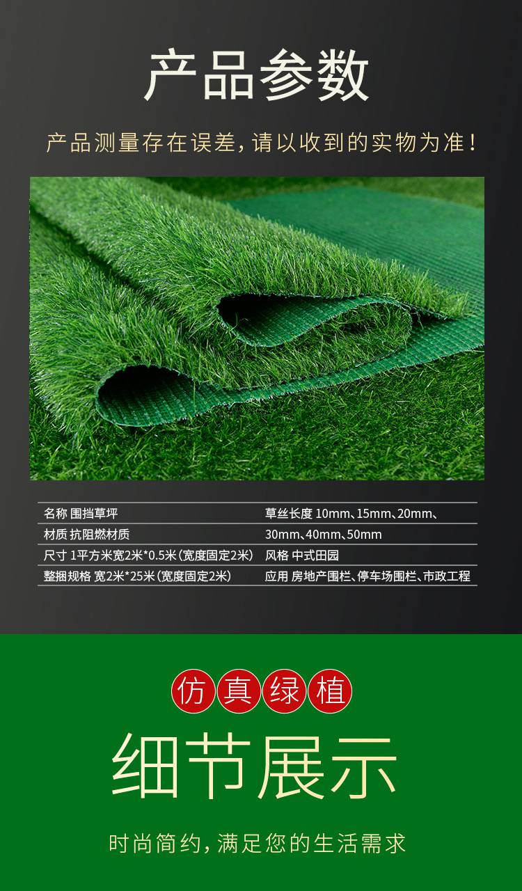 春草色3.0cm墙壁人工草坪 围挡仿真草皮 施工临时围挡绿草皮