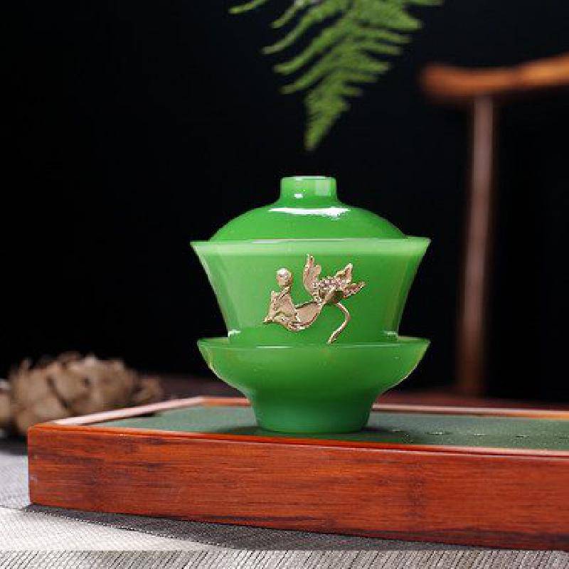 墨蓝翡翠玉瓷茶具套装家用茶壶琉璃茶具盖碗公道杯茶杯茶洗