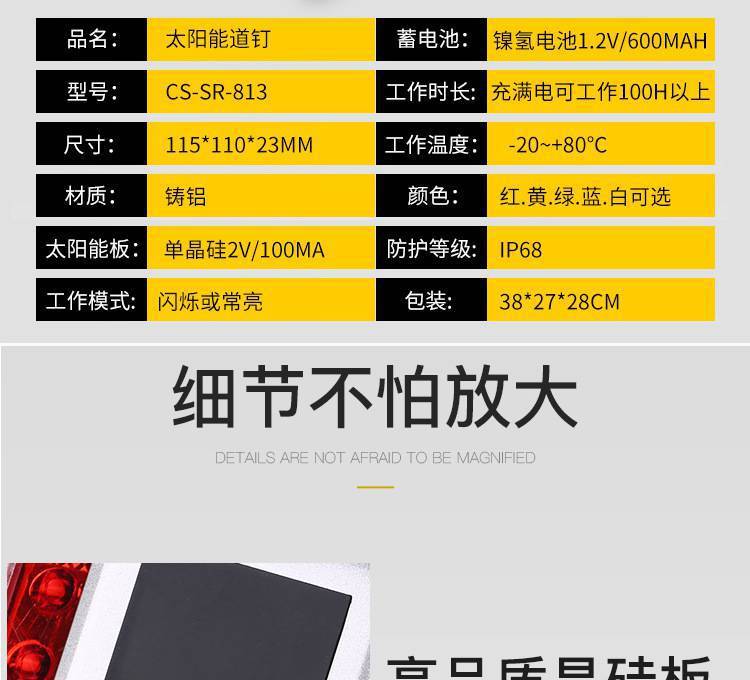 太阳能铸铝道钉 太阳能方形道钉 LED道钉灯抗耐压