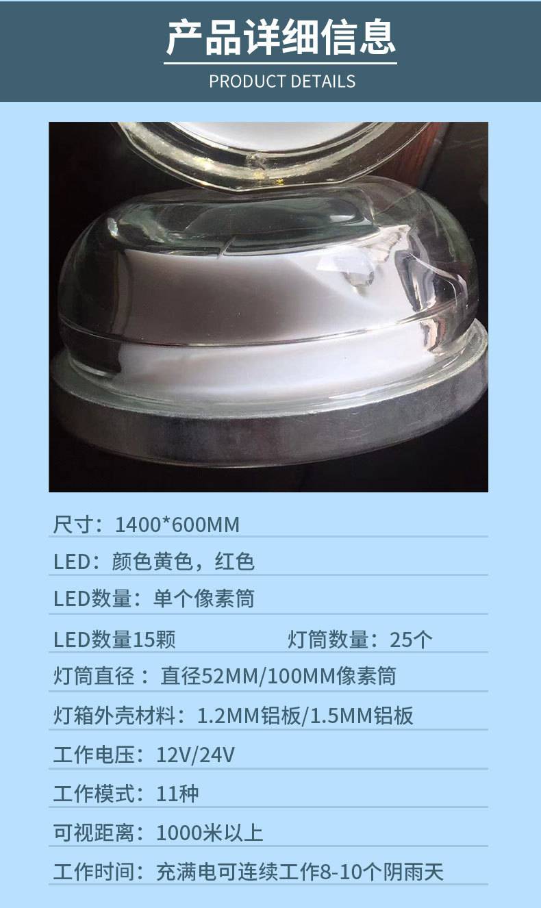 十字路口交通太阳能黄闪加慢警示灯高亮度闪频行车指示灯