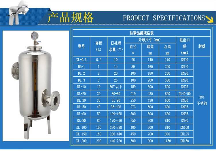 徐州防腐型硅磷晶罐 带表型硅丽晶罐 耐高压硅磷晶过滤器
