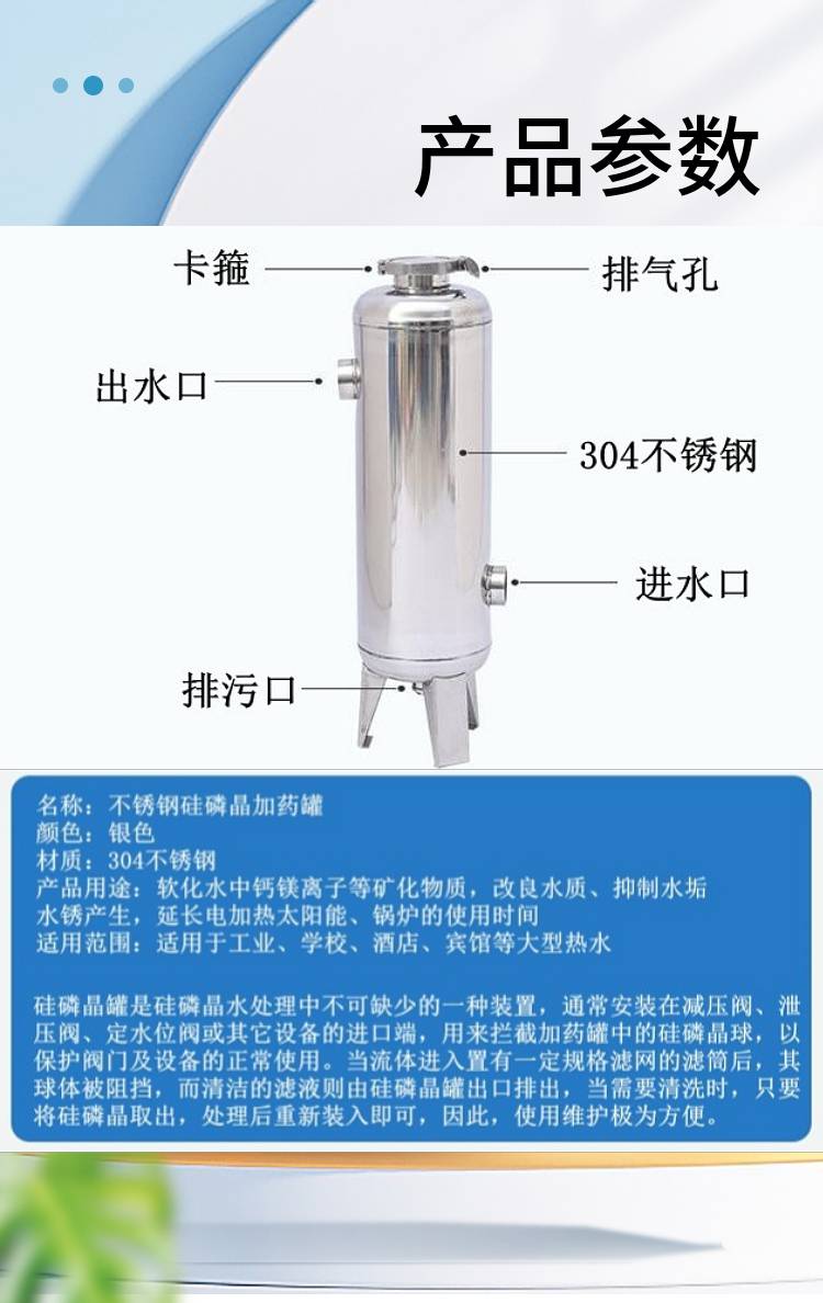 供热管道阻垢硅磷晶罐 卡箍型硅磷晶加药罐 立式硅磷晶罐宁波