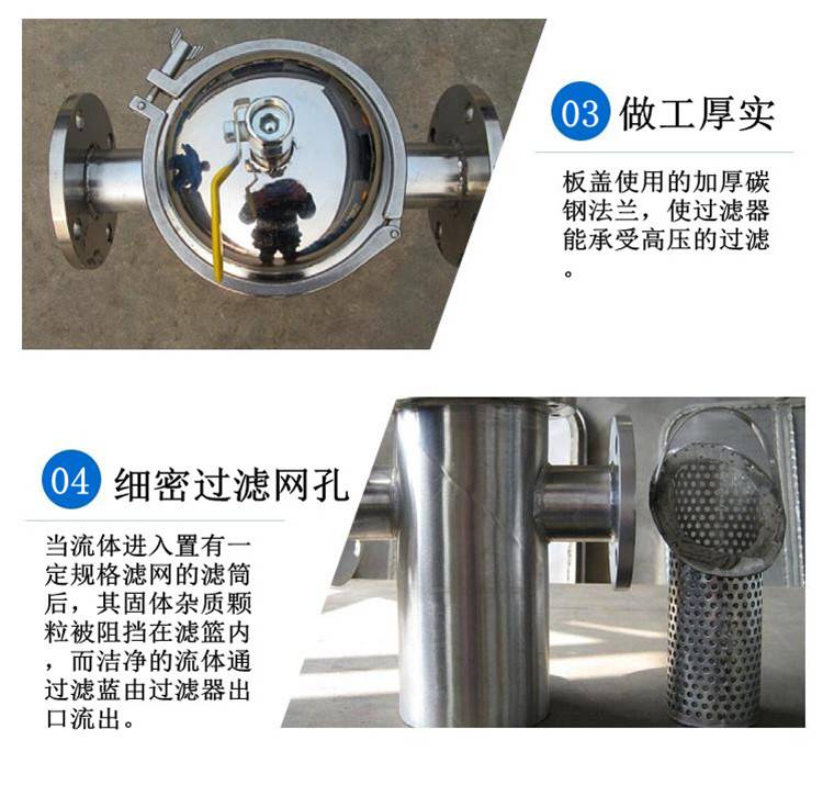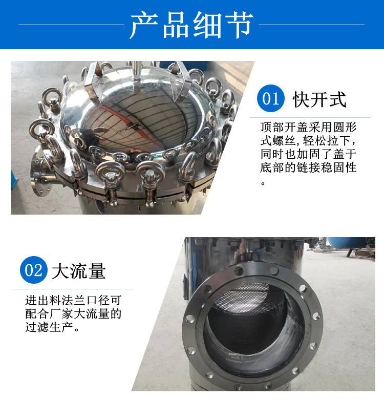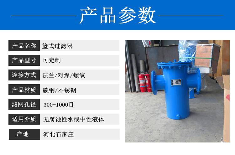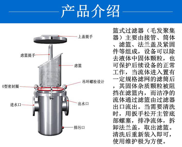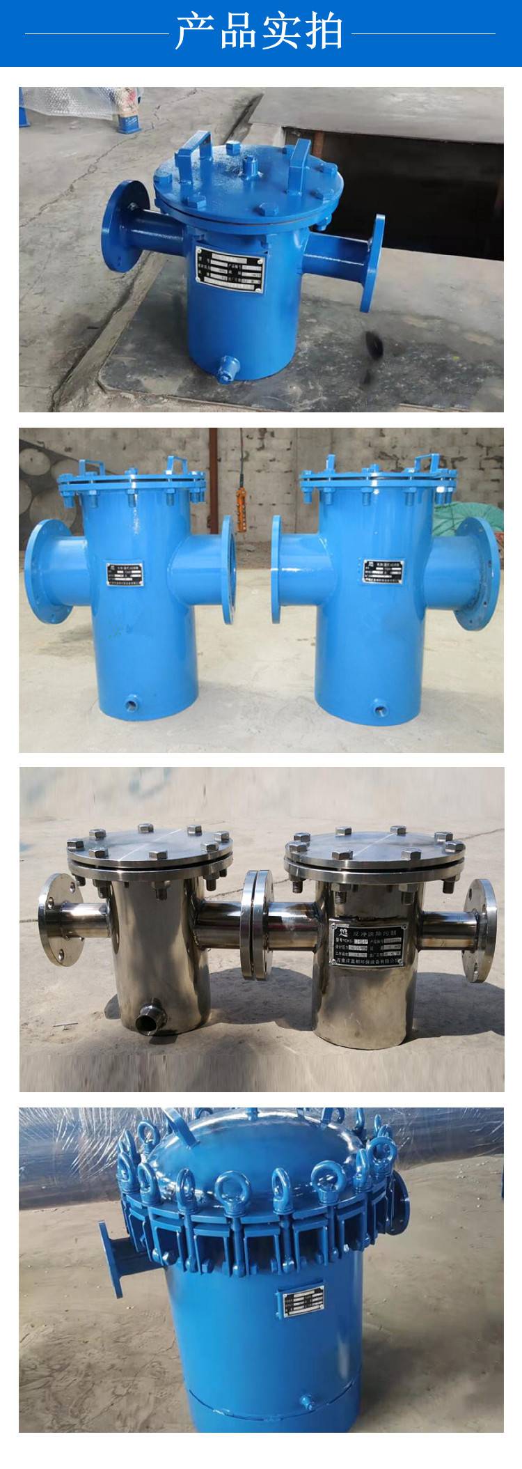 管道过滤器 碳钢蓝式空气过滤设备 法兰接口直通平底毛发聚集设备