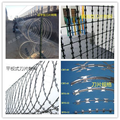 刀片刺绳也称为刀片刺丝、刀片刺网,是一种新型防护网。刀片刺绳具有美观、经济实用、防阻效果好、施工便利等优异特点,目前,刀片刺绳已被广泛应用于许多国家的工矿企业,园林公寓,边防哨所,军事领域,***,***,***建筑物和其他国家的安全设施。