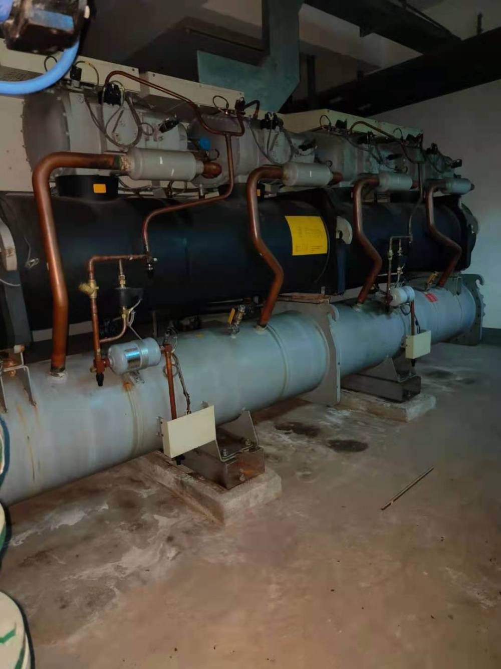 表现为冷却水温度很高,而且快速升高;外界气温高,水路短,可循环的水量少,这种情况冷却水温度一般维持在较高的水平,可以采取增加储水池的办法予以解决。冷却水流量不足,主要表现是机组进出水压力差变小(与系统投入运行之初的压力差相比),温差变大。:管道过滤器堵塞或选用过细,透水能力受限,应选用合适的过滤器并定期清理过滤网;或者水泵选用较小,与系统不配套。冷凝水一般用自来水,在30℃以上时很容易结垢,而且由于冷却塔是开式的,直接暴露在空气中,灰尘异物很容易进入冷却水系统,造成冷凝器脏堵,换热面积小,效率低,而且也影响水流量。其表现是机组进出水压力差、温差变大,用手摸冷凝器上下温度都很高,冷凝器出液铜管烫手。