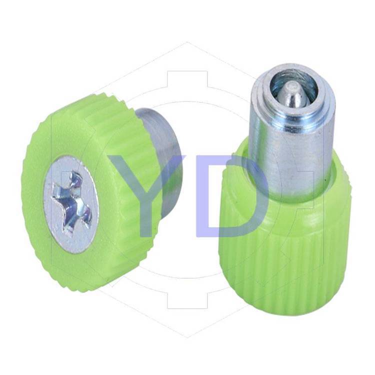 塑胶头松不脱面板螺钉(弹簧螺钉)可用于安装PCB板,只占微小空间。手紧螺钉的压铆套具有压花齿,压装于于机箱或薄钣孔内(注:薄板的钻孔径相对应弹簧螺钉的压齿径有一定要求的,请参考以下各明的技术参数),形成一个外露的弹簧螺钉,用手拧另一端(即手拧端).因其里面固定有弹簧,螺钉相对于薄板的另一端来回进出。该方案解决了需要经常拆卸螺钉难题,而且非常方便实用。