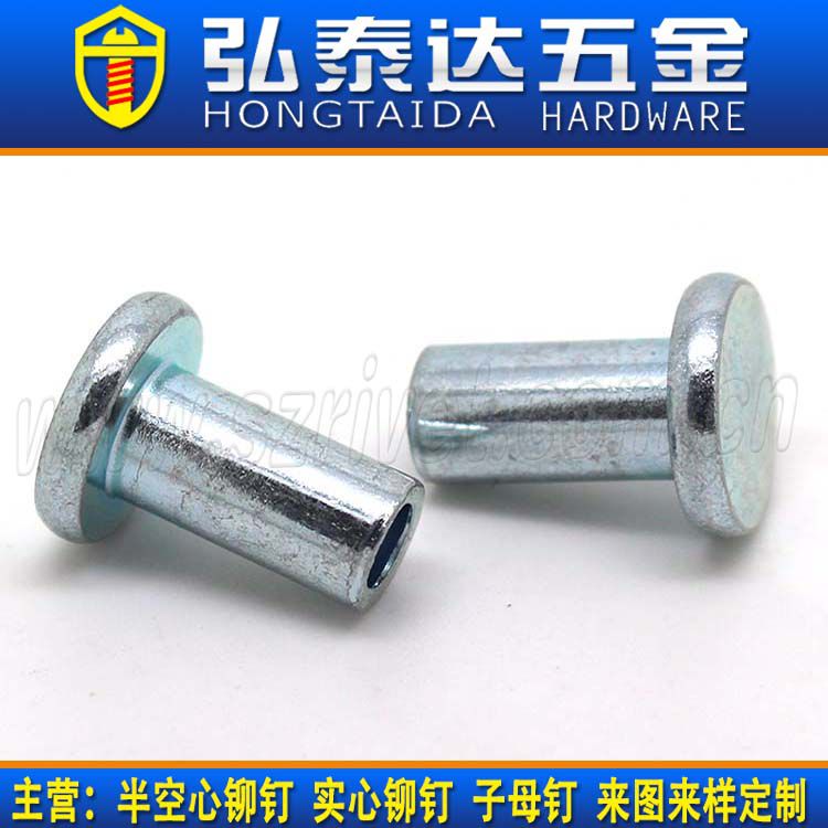 深圳市弘泰达五金制品有限公司是深圳一家专业制造铆钉、螺丝、弹簧的五金公司。公司拥有十多年经验的技术骨干,台湾产的不同型号的冷锻机及配套设备,能生产直径0.8—10.0MM,长1.5--80MM的铜、铁、铝、不锈钢铆钉、子母钉、螺丝、弹簧。我公司秉持(铆钉专业的制造经验和经营理验,具备设计研发及技术开发的能力,延用***的生产经验及技术指导,可满足不同客户的不同需求。产品广泛用于电子、电器、开关、灯饰、文具、家具、皮具、箱包、伞、童车、运动器材、剪刀等各行业产品。本公司通过(ROHS环保认证)永远坚持质量是生命、服务是关键、诚信是根本的理念,以的技术,的效率,的服务,提供给客户最满意的产品。欢迎各界人士浏览我公司(/ ),也可以来电、发邮件与本公司联系或亲临本公司指导,并与新老客户同进步,共发展。服务宗旨:专业的设备!优质的产品!优良的服务!