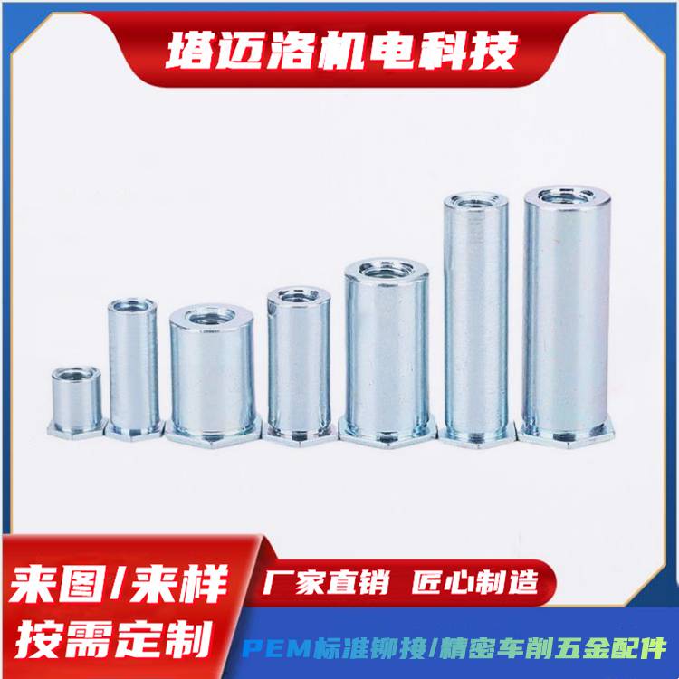 塔迈洛机电专业生产PEM标准压铆螺柱,M2 M2.5 M3 M4 M5 M6通孔和不通孔压铆螺柱,还有非标尺寸的压铆螺柱,欢迎来图来样非标订做产品!
