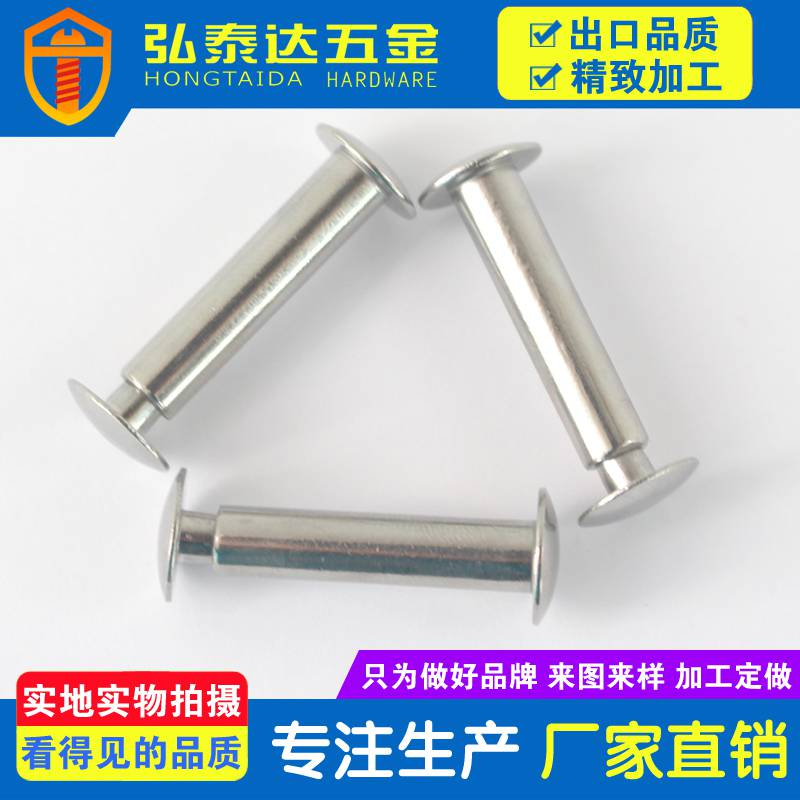 深圳市弘泰达五金制品有限公司,主营铆钉、不锈钢铆钉、铜铆钉、铝铆钉、铁铆钉、子母钉、半空心铆钉、实心铆钉公司拥有***的机械设备及经验丰富的技术骨干,可生产产品尺寸为公称直径: 0.8mm ~ 10.0mm,长度: 1.5mm ~ 60mm,帽径: 1.5mm~ 15mm。制造的产品***,产品质优价廉,起货快捷,服务专业到位,深得广大新老客户的一致好评。本公司一直秉承“诚信 ***专业 共享”的核心价值观和“合规稳健,创新发展”的经营理念,服务优质、效益良好、创新能力和市场竞争能力突出。我们以***进取、敬业创新为精神,热忱欢迎国内外新老客户洽谈合作,共铸辉煌。