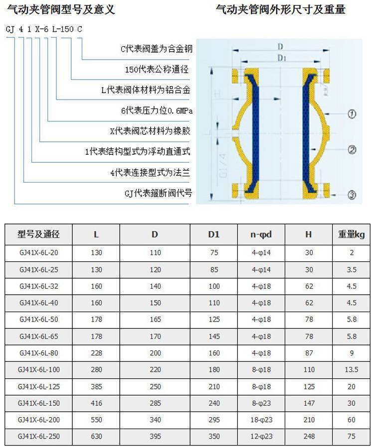 四川阀门销售 气动铸铁法兰夹管阀GJ641X-10