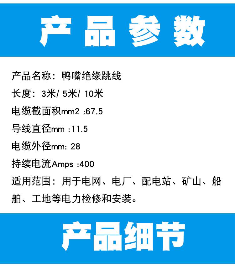 双接头临时跳线组带电作业鸭嘴绝缘跳线电力线路检修分流器