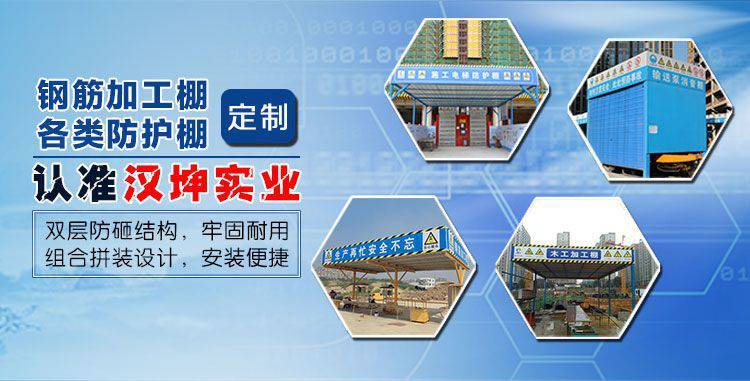 成品钢筋加工棚尺寸_工地防护棚_双层安全防护棚_汉坤实业