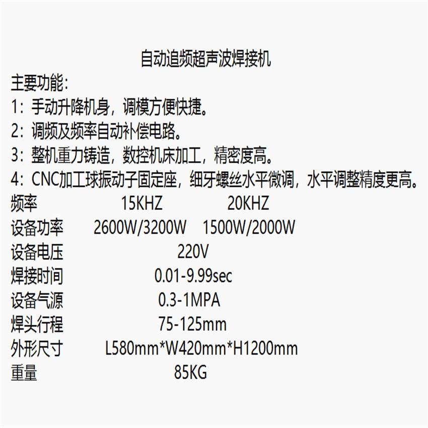 超声波模具怎么调平 茂名市超声波塑料焊接机 2022已更新(今日/动态)如何检测超声波焊接效果是超声波焊接制造流程中迫切需要解决的问题。超声波焊接效果的控制取决于所使用的超声波焊接机的类型。焊接设备种类比较多,从简单的便携式焊机到具备人机通信功能的全微处理器,控制超声波焊机、自动控制焊机,甚至内置统计程序控制程控软件。为特定应用选择超声波焊接设备时,首先要着想的是所需要的过程控制水平,就如同两块聚板之间的点焊。
