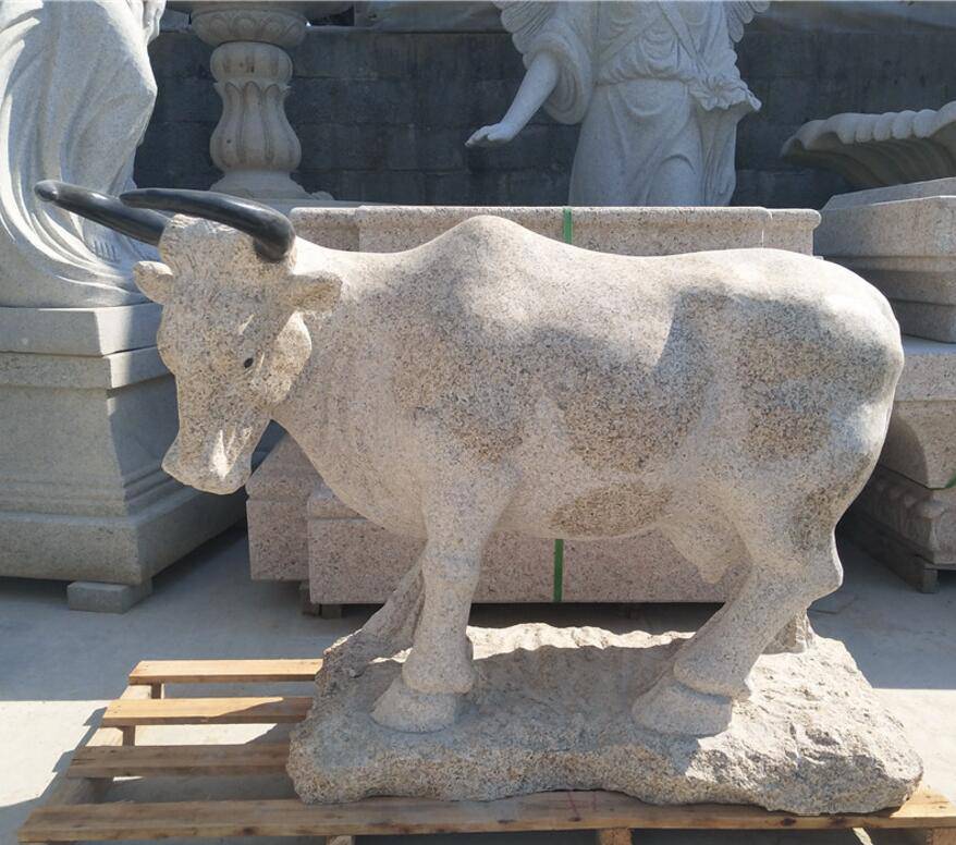 我们经常看到在西班牙的斗牛场上,牛始终认准红色的斗篷,坚持懈的追寻、奔跑着往前冲,这昭示了一种坚韧的力量,以上种种都说明了牛的可爱,让我对它肃然起敬的是牛的信心。牛用处很多,有的摆放在家中,有的摆放在街头、园林中、小区中。家中摆放的就是小件的石雕牛,摆件长度30厘米左右。在室外摆放的就是大件石雕牛其大概有长度1-5米左右。花岗石卧牛用处很多,不但可以做装饰还有一定的象征意义随着时代的进步,作为民族艺术精粹之一的石雕牛仍会深受现代人喜爱。