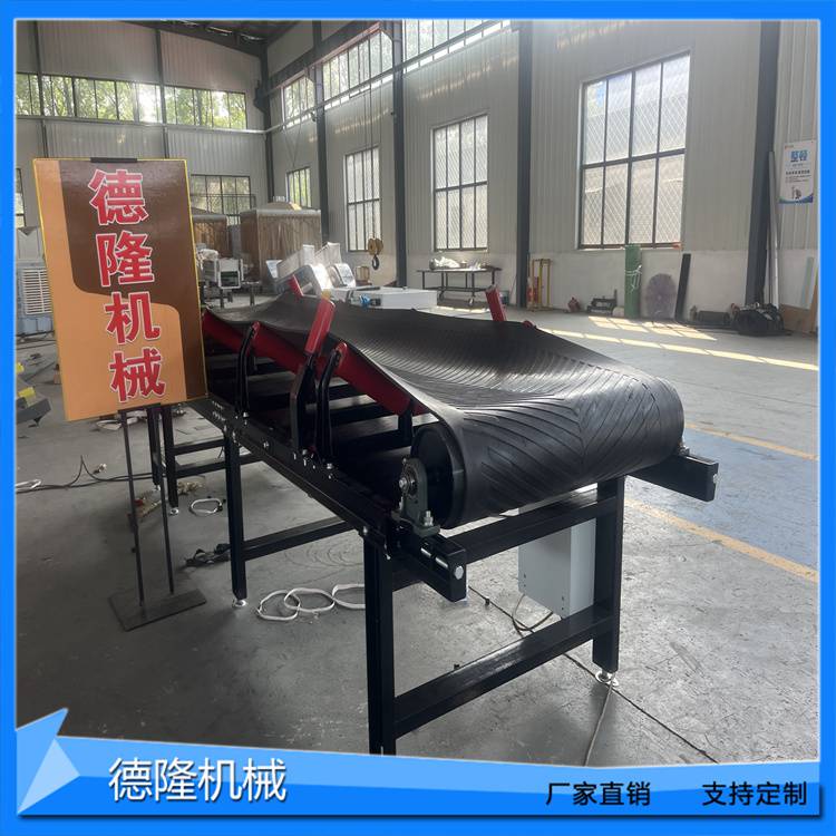 转弯皮带输送机扇形皮带加装专用的防跑偏滚轮或者在输送带的外侧高频焊接导向筋使输送带运行在专用的导轨中,辊筒采用专用的锥型包胶辊筒,广泛应用在食品、饮料、电子等行业,我们可以选用较小直径的滚筒,使转角连接更加方便,***的解决过渡问题。