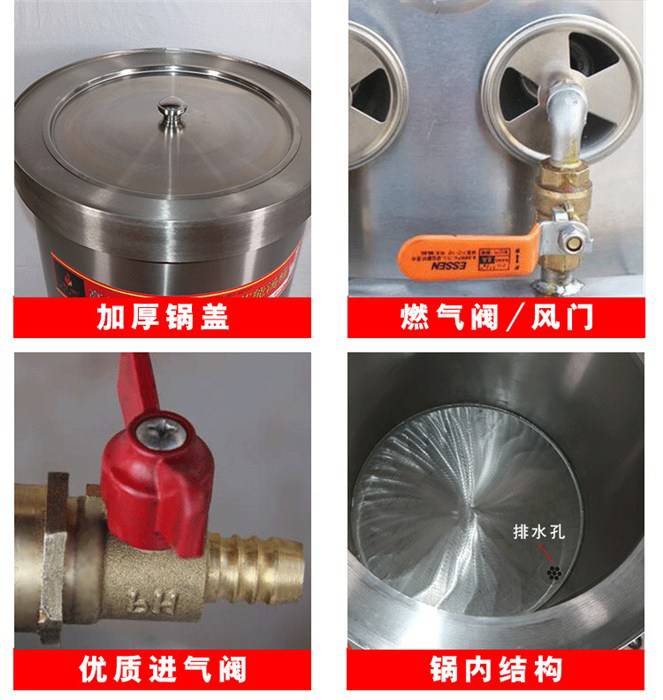 本公司生产的卤煮节能锅、节能汤桶,主要适用于卤肉熟食加工、熬汤、麻辣烫、药材加工、食品保温、高温清洗寄消毒等。整体采用特厚不锈钢材质,平底更实用,桶身整体保温,确保汤质寄口感不改变,产品性能稳定。外观精美、厚重、大气。锅底采用翅片底结构,增大受热面积,传热快,节能效果可以达到40%以上。加长点火棒点火,方便、快捷、安全。大口径排水阀,清洗更方便。不采用任何电子设备,更安全。传统炉灶烧开140升水60分钟,卤煮节能汤桶只需36分钟开锅。