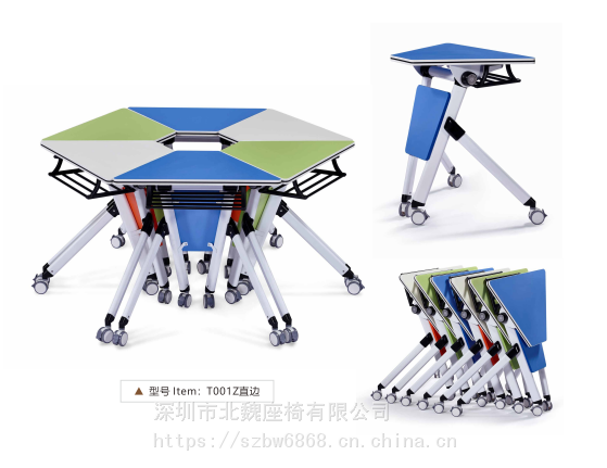 一体办公会议椅会议室折叠椅网布折叠培训椅折叠式多功能椅