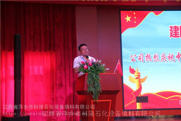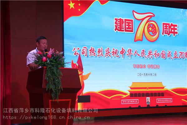 2019-10-2萍乡科隆填料有限公司庆祝中华人民共和国成立70周年大会 秋高气爽,丹桂飘香的收获季节,我们迎来了新中国成立70周年华诞,在这个举国同庆的时刻,全国人民上下无不欢喜雀跃,这是属于中国14亿人民的盛典。1949年10月1日到今天,70年披荆斩棘,风雨兼程。一路走来,中国人民自力更生,艰苦奋斗,创造了举世瞩目的中国奇迹。创造了世界罕见的经济快速发展奇迹,中华民族迎来了从站起来、富起来到强起来的伟大飞跃。