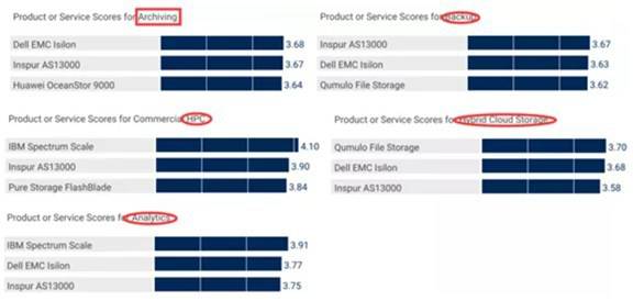 Garnter/SPC-1实现突破 面对新应用的快速增长,浪潮2019年年初整体升维了“云存智用运筹新数据”的存储理念,以一套存储平台实现“5+X”的融合,满足新时代数据的海量、实时、多元、多云等需求,驱动企业数字化转型。在Gartner发布的2019全球分布式存储和主存储魔力象限中,浪潮存储是***两家同时入围的中国厂商之一;在Gartner分布式存储全球用户评测中,浪潮存储***。 此外在Gartner全球分布式文件存储关键能力报告评测中,浪潮分布式存储AS13000是***一个在每个场景下都进入前三的产品。