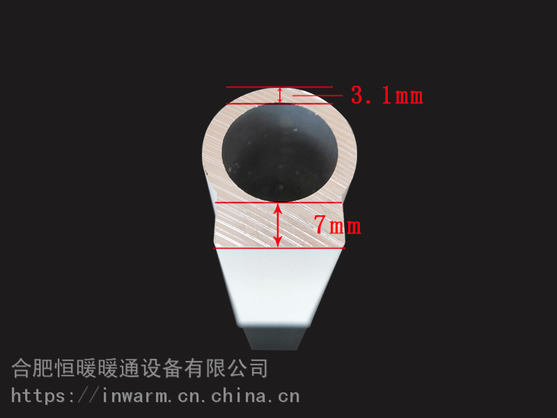 (银屋双水道踢脚线暖气截面图) 超薄水墙暖,散热片、供暖主管和装饰罩等主材均采用的是6063-T5铝合金材质进行生产,散热片和供暖主管之间采用黄铜配件进行组装连接,密封采用厌氧胶,不采用焊接进行连接,因此没有脆弱的焊接点,只要水质符合铝制散热器的要求,可以用一辈子都不会渗漏水,而且铝的热传导速度是钢材的5倍,因此超薄水墙暖散热十分迅速,升温很快。