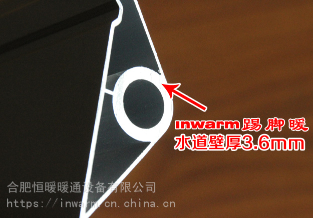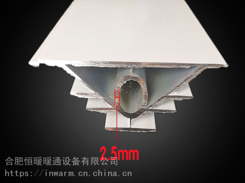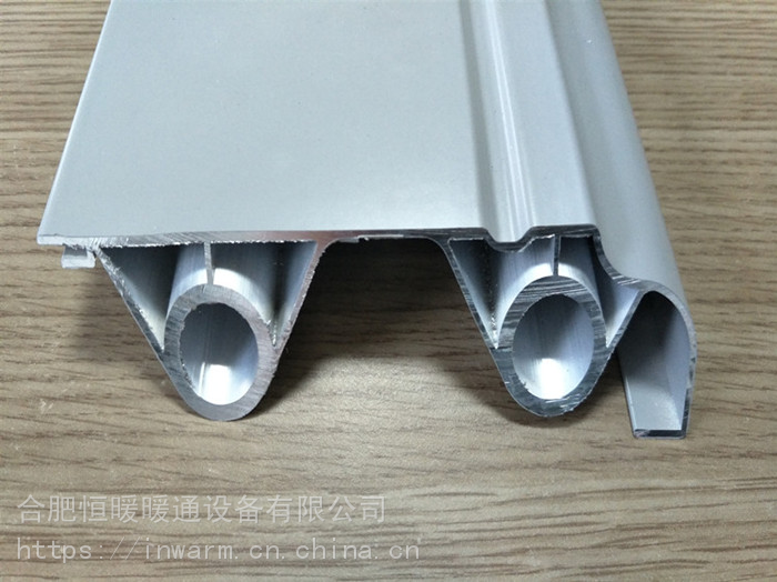 (银屋单水道踢脚线暖气截面图) 超薄水墙暖,也以它的***银屋为例,它的水道壁厚也高达2.5mm,也是一般暖气片1.5-2倍,而且模块式组合,也没有脆弱的焊接点,因此,也可以长期使用,只要水质符合铝制散热器的要求,可以和建筑物同寿命。