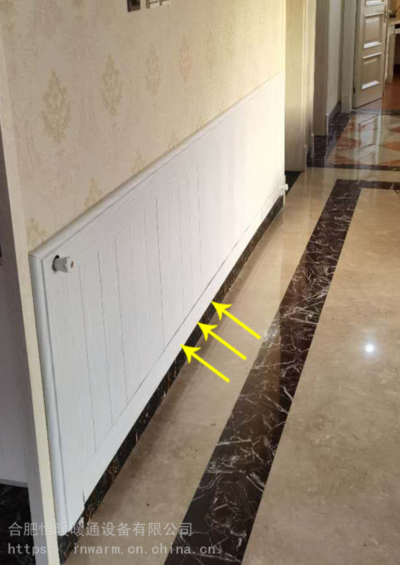 (银屋踢脚线暖气明装图) 超薄水墙暖,也可以在已装好的房子进行安装,但它和传统暖气片一样,要在墙面上布置供暖系统管道,对原本的装修装饰效果有一定的影响,但由于超薄水墙暖外形较为美观,不占据室内空间,比传统暖气片效果会好一些。