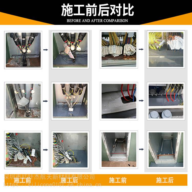 产品特点: 两个组分使用,粘度低,自流平性好。易于操作简单方便 颜色、操作时间均可调整,且不影响它本身的性能 防水、防潮、防尘、防止小动物侵袭,防火阻燃 耐受各种恶劣环境:抗腐蚀,可耐受各种恶劣环境 可与设备及电缆保护套结构紧密粘合,没有腐蚀作用 不变形、不开裂、耐老化、耐候性能好,产品使用10年后,还可以有效保护产品