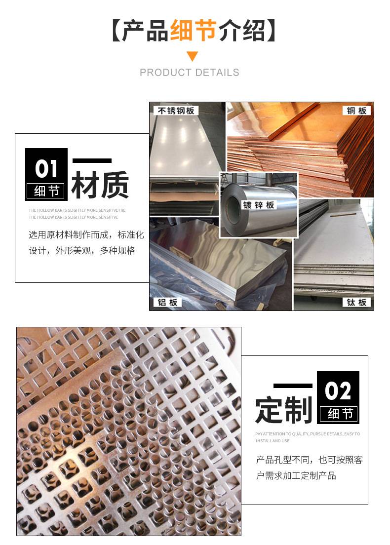| 不锈钢冲孔网的用途有哪些 冲孔板,又被叫做冲孔网,当然有的地方也会叫它多孔板、穿孔板、或者矿筛网、机筛网等等,总之叫法多样。冲孔板的表面有各种不同类型不同形状的孔,比如有方形的孔、三角形的孔、多边形的孔、梅花形的孔等等形态各异的孔型。当然,冲孔板的用途也甚是广泛。下文中,小编便为大家一一介绍冲孔板的诸多用途,大家可得仔细看哟! 圆孔网是冲孔网中常见的孔型,也是冲孔网中各种孔型,更是受人们欢迎的一种。开孔板的特性是:冲压而成;其性能耐弯曲、***、不易生锈、通常以镀锌钢板、不锈钢板、铜板、铝板、镍板及合金板为原料。用途广泛;网面平整、光滑、坚固耐用。建筑楼梯装饰孔板用金属板材为原料,经过冲压机械冲孔而成,冲孔网是市场上应用广泛的产品。开孔板应用于建筑工程,食品加工、石油化工等,孔型包括圆孔、方孔、长圆孔、花孔和各种组合孔型。其中圆孔网是应用普遍的,主要用于:矿山、粮食筛选、室内隔音、消音、粮库通风、机械防护等。厨房设备用的不锈钢水果蓝、食品罩、果盘等厨具,以及商场用的货架网、装饰展销台,粮库用的通风透气网,足球场草坪渗水滤水滤网。开孔板还广泛应用于电子行业,如音响的防尘隔音罩等,产品特性:/易于加工成型/可以喷漆或抛光/易于安装/引人注目的外观/各种厚度的板材/多种选择的孔径和排列方式/良好的吸音效果/较轻的重量/较长的使用寿命/尺寸,开孔板还广泛应用于 化工机械、制药设备、食品饮料机械、烟卷机械、收割机、干洗机、烫台、消音设备、制冷设备(中央空调)音箱、工艺品制作、造纸、液压配件、滤清设备等各行各业。 镀锌冲孔网材料:钢、铁、铝、铜、不锈钢板等金属板材及非金属板材。 分类:镀锌冲孔网又可以分为热镀锌冲孔网、冷镀锌冲孔网和电镀锌冲孔网。 规格:卷板1x20m,平板1x2m,也可根据客户需要加工订做。 关于冲孔板的用途,小编就为大家介绍到这里了。希望大家看完本篇文章后,能够对冲孔板有一些认识。由上文小编为大家的介绍我们可以知道冲孔板的用途是多样的,然而它常常被用来装饰,所以虽然冲孔板的款式多样,并且在使用时的效果也比较明显,但是,各位朋友们需注意,我们在选择冲孔板的时候也要依据实际需求来挑选合适的啊!