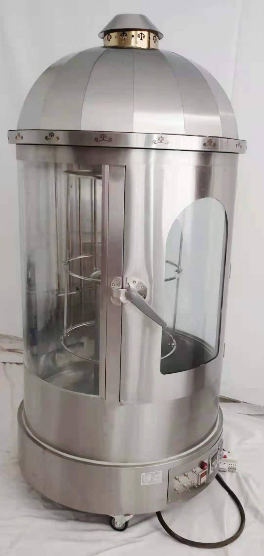 新产品上市,蒙古包电热烤鸭炉 电旋转温控烤鸭炉 该机器是三相电设置,烤鸭,烤鸡,烤鱼,烤肉均可以,豪华型设计,机器外观是蒙古包形状,称为蒙古包烤电热烤鸭炉。 食品机械山东圣科为您提供优质产品,放心选购,机器采用全不锈钢材质加工,机器功率是9kw,机器圆桶直径90公分。
