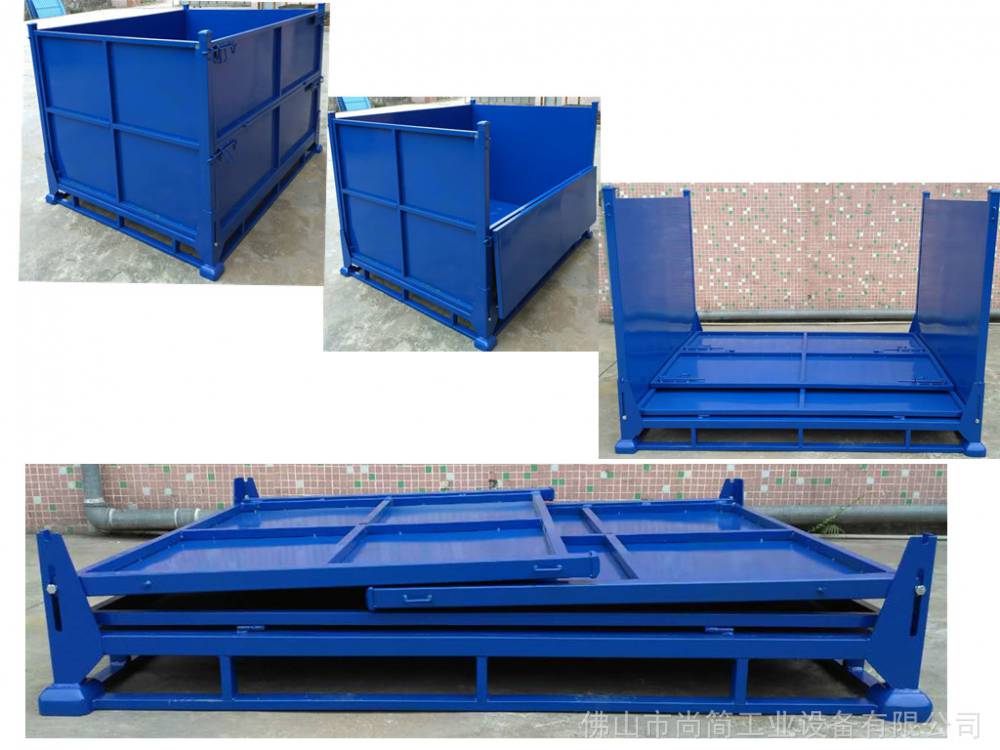 3.箱式铁托盘:箱式钢托盘的基本结构是沿托盘四个边有板式、栅式、网式等拦板,与垫板组成箱体,按照实际的使用的需要有些需要有顶板的设计,有些没有顶板。由于这种钢托盘的箱式结构,它的防护能力强,可更好防止塌垛造成的货损,能装运各种异型不能稳定堆码的物品。