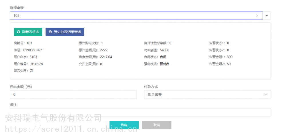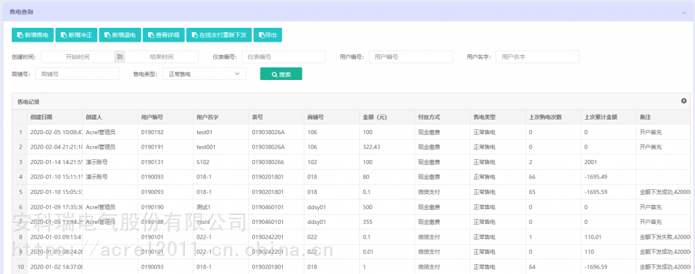 远程售电:财务集中管理,电量实时下发,并比对充值次数防止作弊,方便快捷。