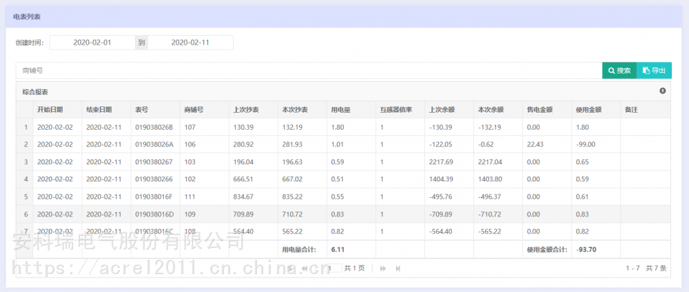 能耗分析:用户和管理员都可查询预付费表或管控表每天的用能状况;可提供能耗分析+财务轨迹一体式综合管理报表,包含用户表的能耗、财务数据、能耗和财务的期初期末值等数据。