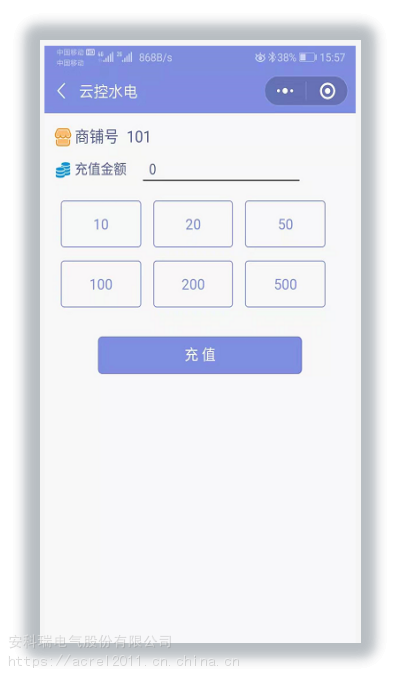在线支付:商户可以通过小程序或者微信公众号实现在线自助充值水电费,也可以实时关注商铺用水用况。