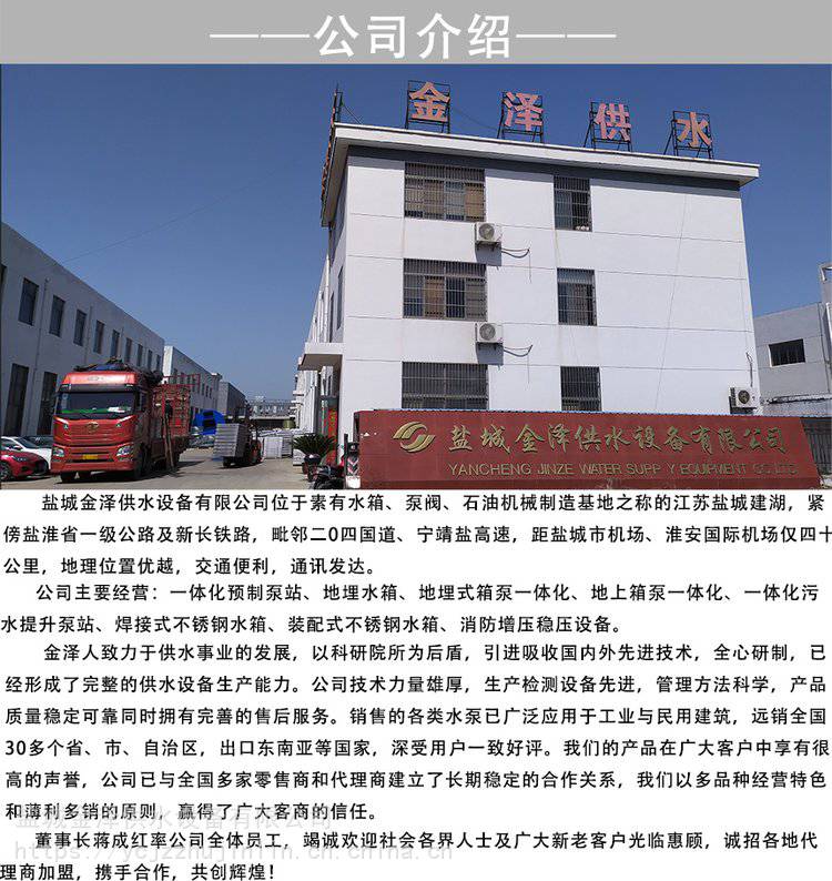 污水提升泵站为代替过去混凝土水池的新型产品。以前混凝土污水池占地面积大,污染重,施工周期长,成本高,造一个污水排放站,需要一个或几个大的混凝土水池,另外还要盖设备间,泵房,还要做环境保护绿化。现在随着污水提升泵站的出现,有效规避了以上的缺点。这就显示出了污水提升泵站高度集成性的优势。污水提升泵站的筒体为树脂以及玻璃钢纤维等原材料缠绕而成,是一个圆柱形筒体,其强度高,耐腐蚀性***。筒体底部耦合式安装潜水泵,当污水提升泵站上游的污水通过管网流进筒体以后,污水提升泵站里的液位探头会传输启泵信号至控制柜,水泵启泵后水泵的出水用不锈钢管道连接至泵站的总出水口,污水出去后再将污水通过管网排放到目的地。整套设备都是直埋于地下,四周不影响种植绿化,占地面积小,不在近处都发现不了。不需要地上建筑。其密闭性不会导致臭气挥发,整体设备不需要泵房,不需要设备间,自动启泵停泵,不需要人工值守。阀门,管道,水泵,检修平台,控制柜,电缆,都安装在一个筒体上。这就是污水提升泵站的高度集成性。 污水提升泵站的名字其实叫一体化预制泵站,因为用于污水提升排放,才叫污水提升泵站。其实还有一个重要的优势就是其多用性。不光用于污水提升泵站。公路或别的项目的雨水输送排放,项目上取水泵站,景观用水泵站,绿化灌溉泵站,循环用水,排涝泵站,河水排流泵站,截污工程泵站,都需要采用此泵站。 污水提升泵站为我公司主营产品,自产自销,全国质保。***格,没有中间商差价,更是***了产品的质量,雄厚的技术力量,只要告诉我们项目上的污水处理总量,管网的标高,我们就可以为您设计出***的方案。如果已经有设计图纸,请把图纸发给我们,我们会更的优化图纸,让您的质量得到***,有效规避不必要的成本。我们会审图后给您报价。欢迎来电咨询。