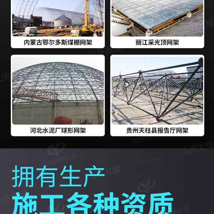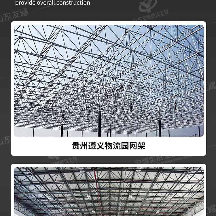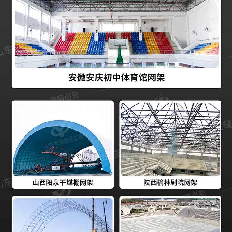 网架在需要大跨度、大空间的体育场馆、会展中心、文化设施、交通枢纽乃至工业厂房,无不见到空间结构的踪影。网架结构的优点是用钢量小、整体性好、制作安装快捷,可用于复杂的平面形式。适用于各种跨度的结构,尤其适用于复杂平面形状。这些空间交汇的杆件又互为支撑,将受力杆件与支撑系统有机结合起来,因而用料经济。 网架主要用于大、中跨度的公共建筑中,例如体育馆、飞机库、俱乐部、展览馆和候车大厅等,中小型工业厂房也开始推广应用。跨度越大,采用此种结构的优越性和经济效果也就越***。