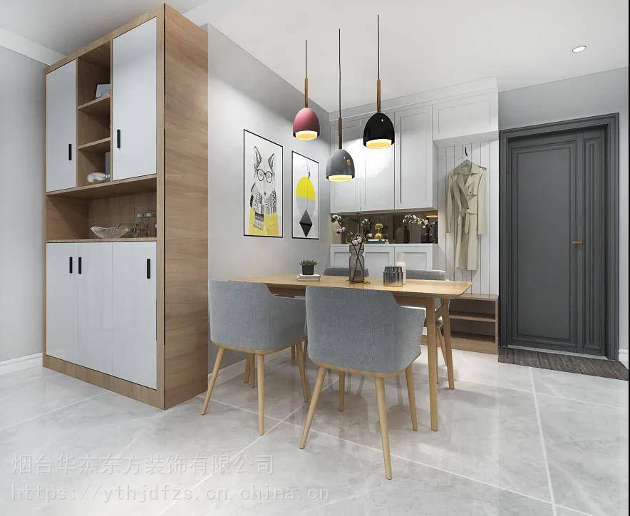 △ 次卧定制纯白色的榻榻米床组合衣柜、书桌柜一体设计,同色的床品,实现了整体空间的视觉高度协调统一。 考究又有质感的五金配件,给整体设计增添了质感。 餐厅 Dining room