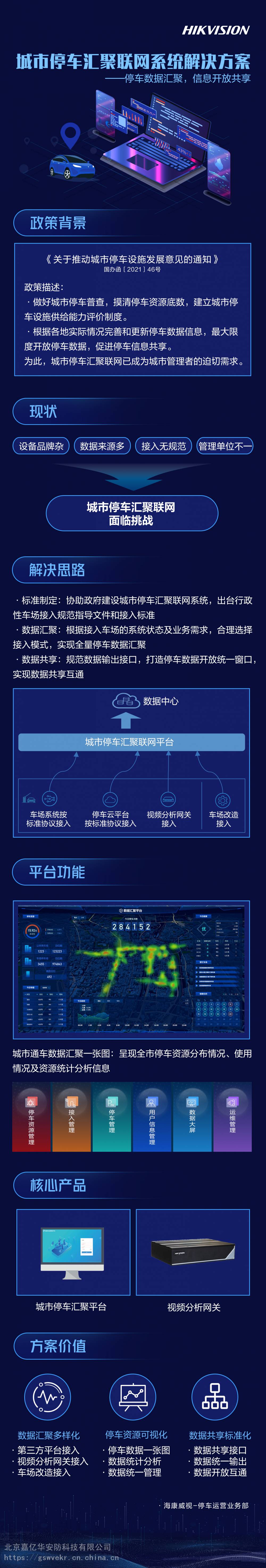 城市停车汇聚联网系统解决方案 政策背景: 《关于推动城市停车设施发展意见的通知》 国办函〔2021]46号 政策描述: ·做好城市停车普查,摸清停车资源底数,建立城市停车设施供给能力评价制度。 ·根据各地实际情况完善和更新停车数据信息,限度开放停车数据,促进停车信息共享。 为此,城市停车汇聚联网已成为城市管理者的迫切需求。 解决思路: ·标准制定:协助***建设城市停车汇聚联网系统,出台行政性车场接入规范指导文件和接入标准 ·数据汇聚︰根据接入车场的系统状态及业务需求,合理选择接入模式,实现全量停车数据汇聚 ·数据共享︰规范数据输出接口,打造停车数据开放统一窗口,实现数据共享互通