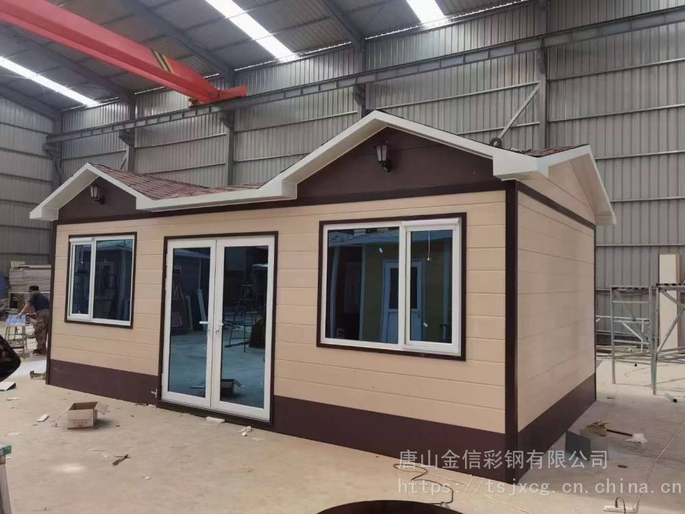 唐山金信彩钢有限公司坐落于河北省唐山市,致力于生产多种预制房屋,装配式房屋。主要产品品类: 1、打包箱,箱式集成房屋,走廊箱,活动板房,K房,临建项目部,工地宿舍临建房 2、移动别墅,民宿别墅,景区移动房屋,景区阳光房,钢结构别墅 3、金属雕花房,四坡五脊钢结构房,金属雕花岗亭,金属雕花门卫室,金属雕花卫生间 4、集装箱设备箱,集装箱方舱,配电箱房,箱变配电室 5、垃圾分类房,城市智能垃圾分类箱,移动垃圾分类房,智能垃圾分类处理箱,金属雕花房垃圾分类房 6、岩棉复合板、瓦楞板、K房材料,打包箱框架、临建小件材料等。 可承接临建工程、钢结构车间工程、彩钢工程、钢结构别墅安装工程,是一家集加工、销售、安装施工为一体的生产企业。公司生产设备齐全,产品品类丰富,源头工厂,***格。经过多年的不断升级,业务拓展,深受广大客户认可。 竭诚欢迎国内外客户莅临指导,共创美好未来。 金属雕花房批量生产中