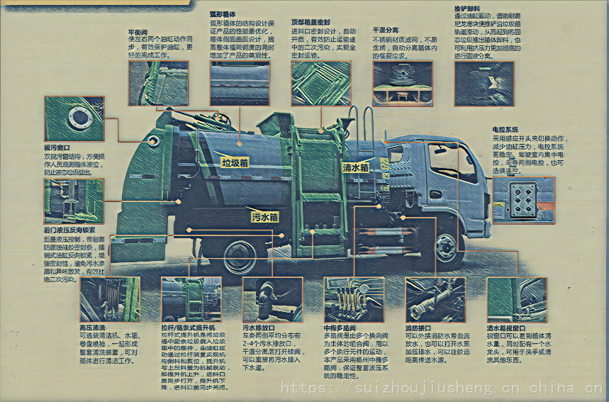 餐厨垃圾车的分类 餐厨垃圾车是专门回收厨余垃圾的车辆 首先,餐厨垃圾车分为两种形式,方罐和圆罐,这是从外观上说的。 那么再来看看餐厨垃圾车的配置,方形罐体的餐厨垃圾车一般罐体是4毫米厚,采用碳钢材质,液压油泵采用合肥长源油泵,搭配江苏扬州的中梅多路阀,和加粗油缸,浙江嘉善取力器,选择推铲卸料的就不带举升功能,餐厨垃圾车相对于挂桶垃圾车是带有干湿分离功能的,后盖液压开启液压锁紧,挂桶提升功能可以挂120L/240L标准的塑料垃圾桶,驾驶室内带遥控器,遥控可视化操作。另外车辆带高压清洗水箱清洗功能。 重点! 圆罐体和方罐餐厨垃圾车的不同点! 圆罐体为举升自卸