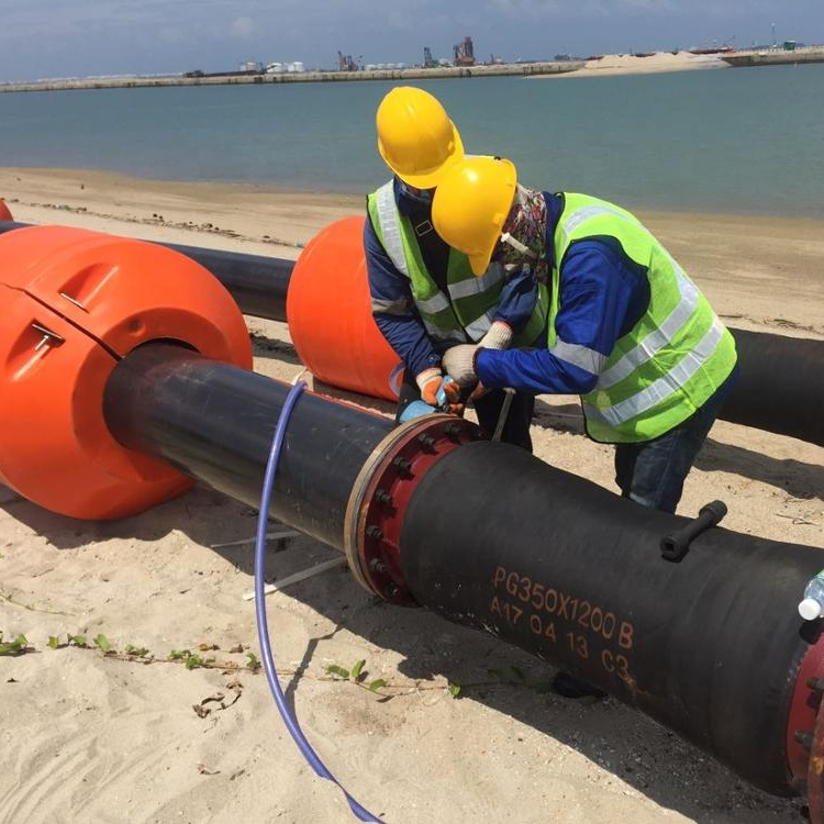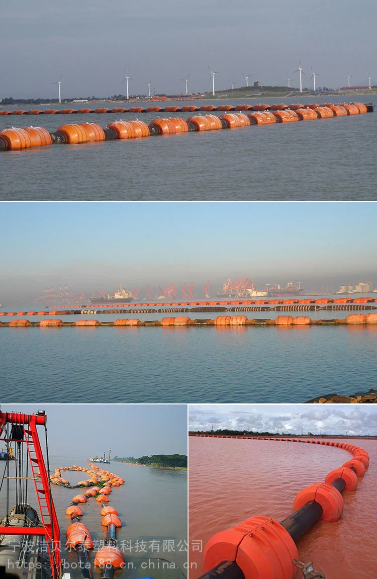 海上管道浮撑;河道疏浚浮筒用它代替钢浮船用来漂浮海上排泥管线具有,体积小,安装方便,抗风浪等优点,国外已使用了50多年,98年传入中国以来,经过10多年的推广应用,现已被多数疏浚企业认同。 海上管道浮撑;疏浚浮筒采用为外壳聚乙烯LLDPE塑料滚塑工艺旋转一次成型;内腔填充聚苯乙烯泡沫的整体实心安装结构,其中还添加抗紫外线物质,富有足够的韧性、硬度、能经受自然环境变化和低温侵袭,无缝无焊接,无气孔、沙眼、重量轻、浮力大、耐酸碱、免维护、组合变换灵活、寿命长、颜色鲜艳美观、抗腐、防冻、防紫外线***、不受海水、化学品、药剂、油渍及水生物的侵蚀,***、不破坏环境,整个浮筒一次成型无缝、无渗水、无存水的问题,并可回收再生利用。