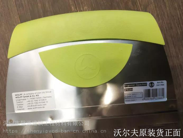 PVC地板的常规安装工具认知(六) 六、刮胶和粘贴工具 刮胶板: 沃尔夫的人体工学刮胶板,长时间握持,手感舒适,不易疲劳。