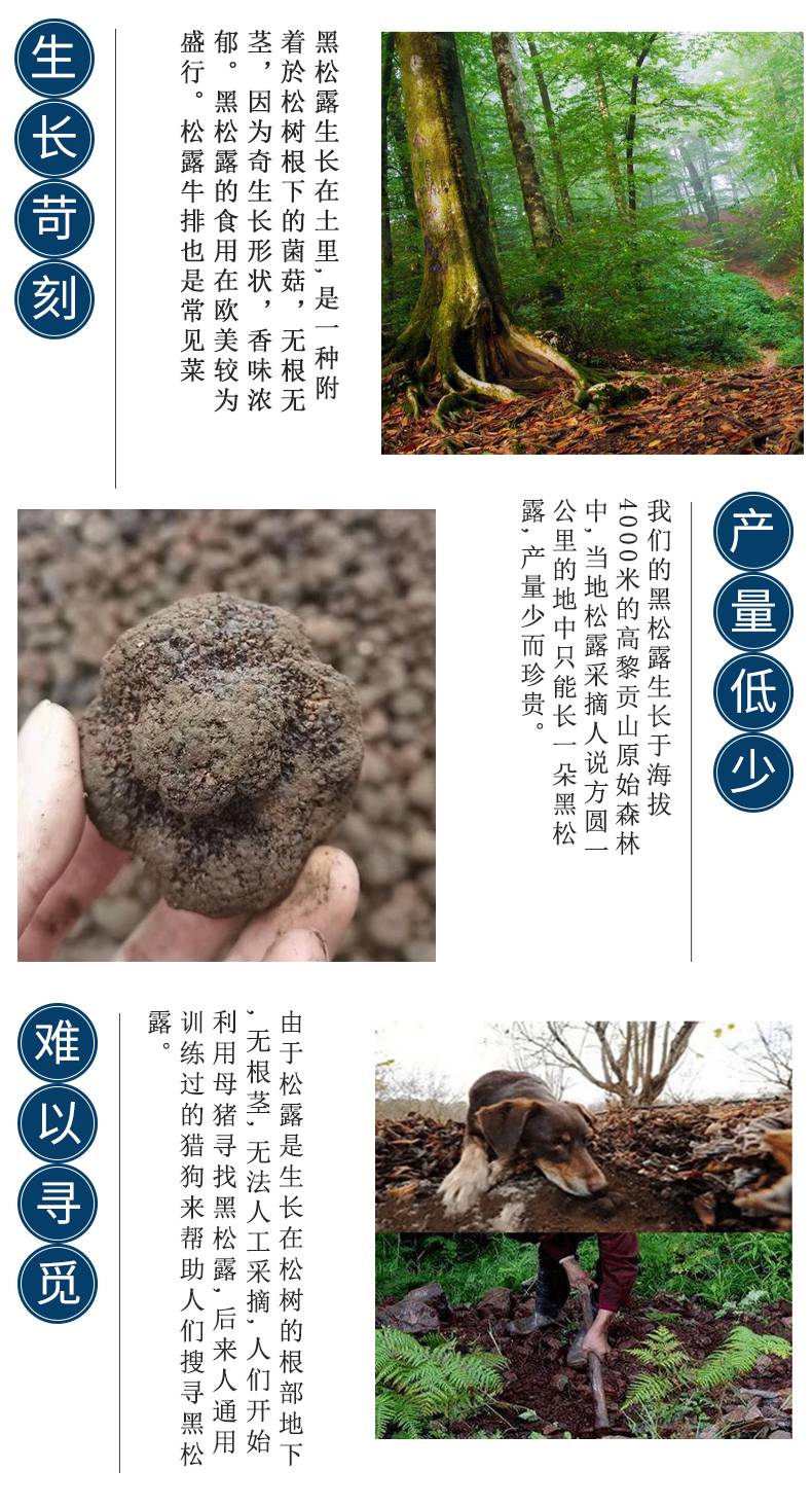 黑松露的成熟期通常在每年的11月到次年的3月,的季节是在12月到次年的3月之间,而***的季节是次年1月,是吃黑松露的时间。 去年也就是2021年的新鲜松露上市时间比较早。那就意味着新鲜松露的供货时间很快结束。一般来说,新鲜松露在春节之前基本上会断货。发现现在云南野生菌越来越少,特别是黑松露基本上每天只能收到100kg左右,也就说很快要进入断货期。