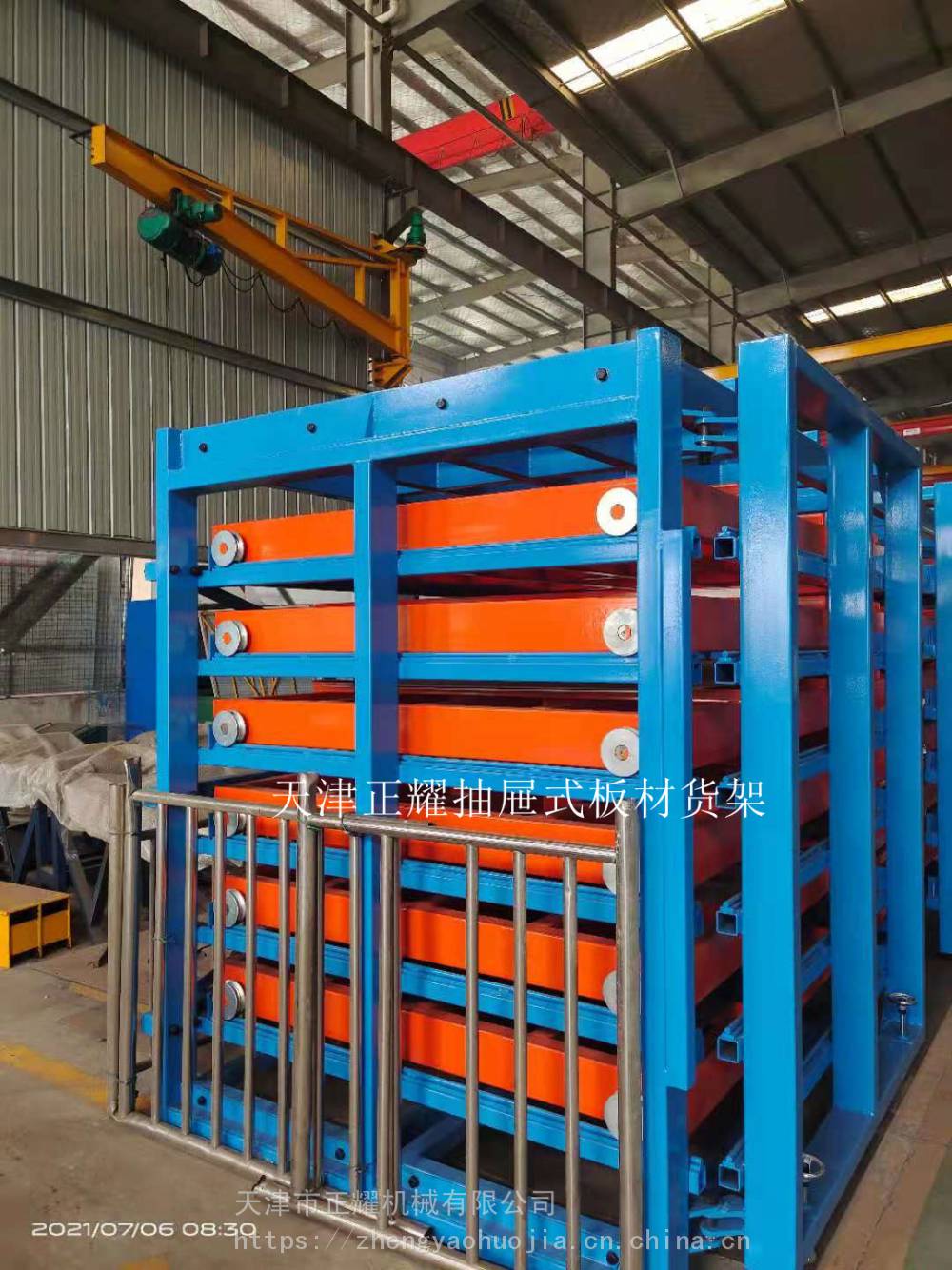 1月20日 在浙江用户现场,工人安装调试完抽屉式板材货架 对于板材,怎么企业管理者不知道如何存储能改变现在堆在地上的情况,堆放占用空间大,存储不方便,那如何进行很好的分类存储管理呢,其实,使用抽屉式板材货架是个不错的选择 通常车间板材原材料,在激光切割前,可以进行整包存放,利用行吊或叉车,进行存取,抽屉式板材货架可以设计多层,每层承重3吨内根据需要选择,长度6米以下的板都可以这样存放