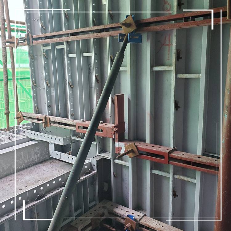TIANJAIN钢背楞工艺流程:弹模板控制线→加内墙定位筋及放置内撑→拼装模板→钻孔及安装塑料套管和穿墙螺栓→安装墙体次背楞→安装墙体主背楞→安装阴角锁具→安装阳角锁具→安装洞口锁具 →安装可调节拉条并调整校正(标准层不考虑)→支撑架体系加固→检查验收。  钢背楞木模板施工要求:(1)模板面板为15mm胶合板,尺寸为915×1830×15,配模时尽量挑选厚薄一致的配制;(2)顶板主龙骨为50×70×3mm(矩管)、墙柱主龙骨为50×30×2.4mm(双矩管)、次龙骨40×40×2.5mm(矩管);(3)龙骨必须平直,如有弯曲变形、锈蚀、裂缝、焊缝开裂等现象不得在施工中使用。(4)木方规格符合产品标识要求,横截面尺寸统一,枋料顺直,无裂纹,单根木料木节不得多于3个,且木节直径不得大于木枋截面1/3;(5)对拉螺杆用M14对拉螺栓,长度与构件厚度相适应;螺杆平直,无扭曲、裂纹;螺纹完整,无滑丝扣;螺杆表面做防锈处理。(6)模板高度调节使用顶托。要求螺杆转动灵活,调节高度300mm;调节手柄无裂纹和断裂现象,坚固耐用。顶托螺杆涂抹防锈、润滑油。(8)根据构件截面尺寸和结构层高,设计次背楞中心距, 主背楞间距,螺杆纵横向间距,穿墙套管选用PVC管。(9)建筑结构阴角和阳角部位采用阳角钩子二次锁紧,使阴阳角达到90°,***构件平整,不跑浆、不涨模。(10)采用50×30×2.4mmQ235型钢钢材, 双梁组焊件,增强强度,适应不同宽度的部位;利于安装,操作便捷,施工速度快,一人即可操作。(11)施工过程中及时跟踪检查,按照要求进行实测实量,发现问题及时整改纠偏。