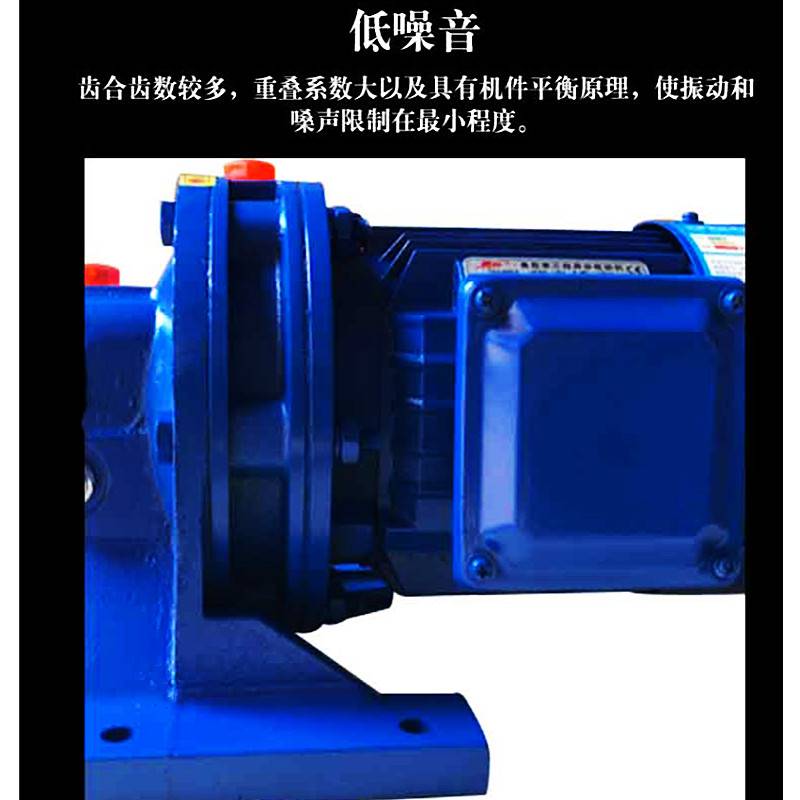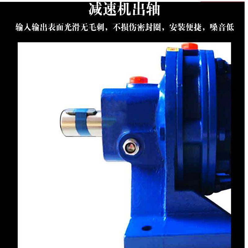 二、结构特征 1、摆线针轮减速机减速比高,传动效***:一级传动减速比为9-87,双级传动减速比为121-5133.多级组合可达数万,且针齿啮合系套式滚动摩擦,啮合表面无相对滑动,故一级减率达94%: 2、摆线针轮减速机由于采用了行星式传动原理,输入输出轴在同一轴心线上,结构紧凑,体积小,与同功率的其它减速机相比,重量体积小1/3以上。 3、摆线针轮减速机运动平稳噪声低:运转中同时接触的齿数多,重合度大,运转平稳,过载能力强,震动和噪声低。 4、使用可靠,生命长,主要材料采用轴承钢材质,经淬火处理(HRC58-62),再精磨而成,且啮合区无相对滑动,磨损极小,经久耐用。 5、设计合理,维修方便,容易分解安装。 6、过载能力强、耐冲击、惯性力矩小,适用于启动频繁和正反转的场合。 7、减速机无自锁作用,输出轴不能承受轴向力,可能出现过载现象的使用场合,应安装过载保护装置。 8、当采用联轴器把摆线针轮减速机与配套的机械连接时,推荐使用弹性联轴器。 三、产品类别 摆线针轮减速机常用系列有B系列和X系列; 安装方式有地脚安装(W卧式)和法兰安装(L立式) B系列摆线针轮减速机与X系列摆线针轮减速机不是一个系列的产品,是按照不同标准生产的:B系列是按照化工部门颁布的标准生产的,X系列是按照机械部门颁布的标准生产的。但两者各自相应型号的承载能力和输出扭矩却是相同的,只是尺寸和安装方法有些不同。 电机直联型与普通电机型区别:电机直联是跟减速机一体属于定制的电机;普通电机型是指电机,通过法兰与减速机相联,电机更换方便。