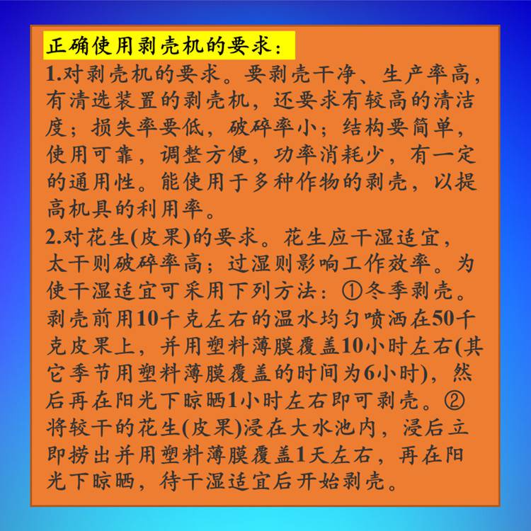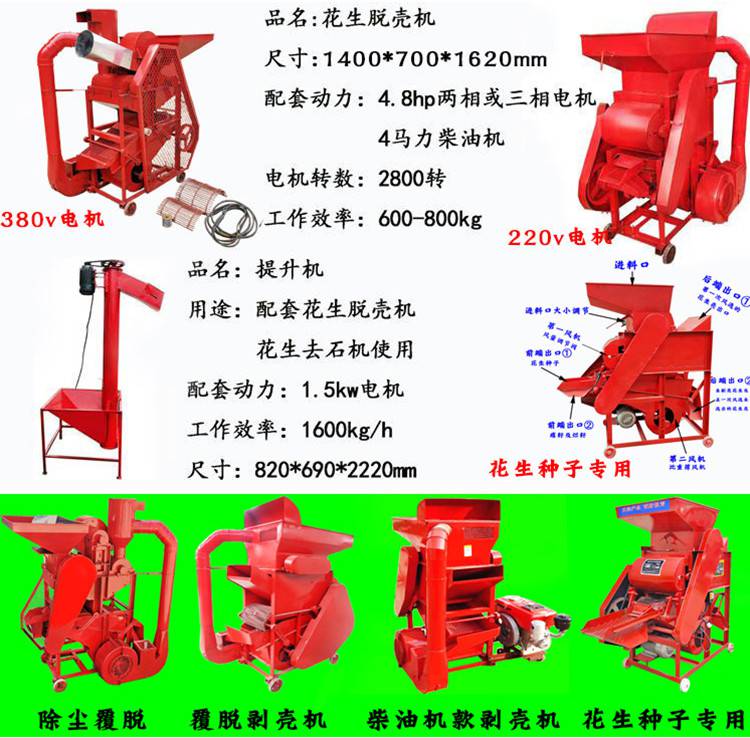 花生剥壳机 家用花生去皮机 半自动 产品说明:SL系列花生剥壳机是我厂根据目前花生市场的需求而研制开发的普及性产品, 其主要特点是加工的花生米破碎率低、分选干净、色泽好、杂质少,各项指标符合***。 我厂技术力量雄厚、设备齐全、工艺检测手段***,以优质的产品、周到的服务深受广大用户的好评。 我们将一如既往遵循“信誉至上”的经营宗旨,使我们的产品走进千家万户。 类型: 电动剥壳机 适用对象: 花生 型号: 300 配用动力: 0.75-1.1(kw) 处理量: 300(kg/h) 整机重量: 40(kg) 产品类型: 全新 榨螺直径: 0(mm) 榨螺转速: 0(r/min) 榨膛内圆直径: 0(mm) 出油率: 0(%) 电源电压: 220-380(V) 小型剥壳机一个小时可以剥300斤左右,动力0.75KW(用户自配动力) 花生剥壳机主要特征和用途 花生剥壳机具有结构紧凑,操作简便,性能稳定可靠,剥壳效***花生仁破碎率低、分选好、损失率低等优点。花生果由风送上料装置(或人工喂料)送入喂料斗进入前滚筒里,利用纹板转动与弧度栅间的挤搓力将花生果的壳仁剥离,剥离后的花生仁与壳同时经前弧形栅落下,通过风道时,由上风机风力将大部分花生壳吹出机外,而花生仁和一部分尚未剥离的花生小果一起落到比重选筛上进行分选,分选后的花生仁由分选晒面上行,经出仁口,流入麻袋。未剥的花生小果,则由分选晒面下行,经回料口流入提升装置,由风送提升装置送入后滚筒里二次剥壳,剥离后的仁和壳经后弧形栅落下,再次经上风机风选,比重分选筛精选,如此反复,即可实现全部剥壳。